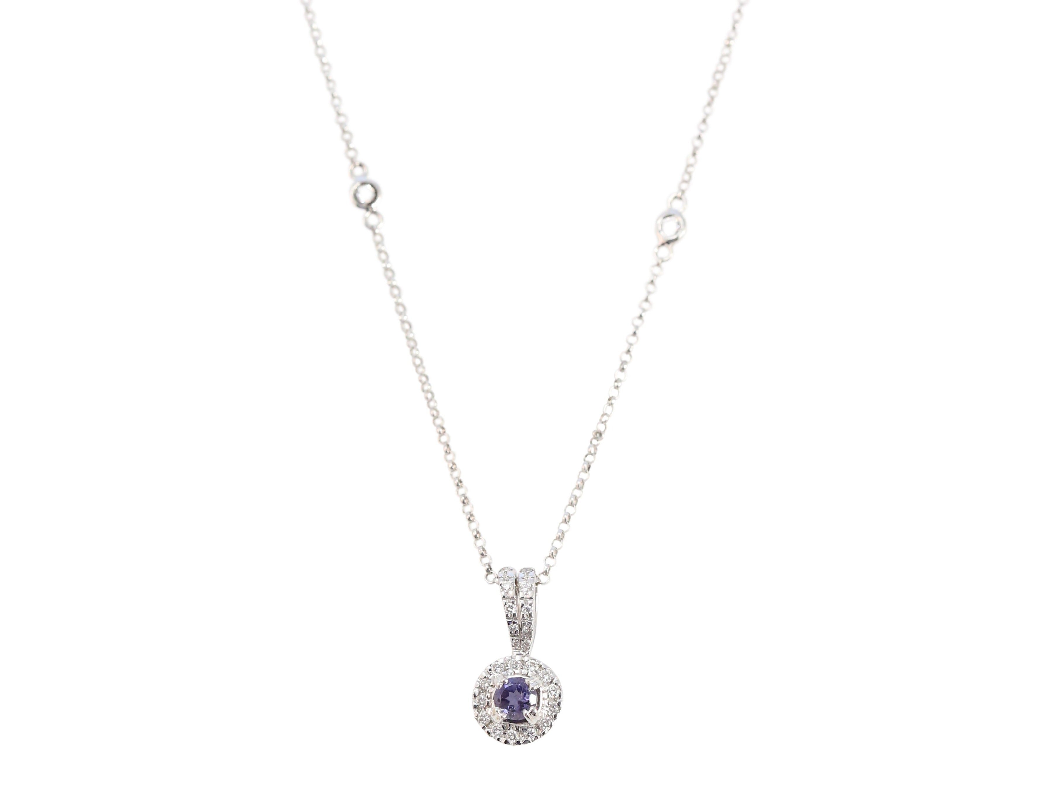 18k White Gold Blue Sapphire and Diamond Surround Necklace